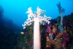 一の根周辺ではタカサゴ群れ、フリソデエビ、フタイロハナゴイ、ミツボシ、クマノミ、大型のコブダイ。