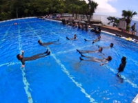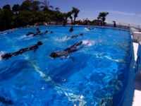 | スクーバダイビングでの重要なスキルの一つ、「フィンスイミング」のトレーニングも最初にしっかりと行います!! |
