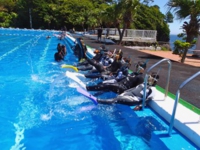 当日の海況で伊豆海洋公園以外での開催の場合、港内など静かな海域での基礎トレーニングを行います。