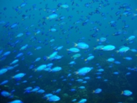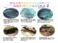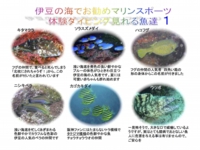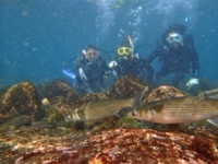 | 大きなボラも見れるかもしれません!! | 伊豆の海の定番!! ブルーの色がとてもきれいなソラスズメダイも!! | 夏から秋にはこんなに沢山の群れを見れることもあります!! |