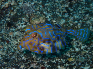 アカグツは、とても深い水深から上がってくる深海魚で、とても珍しい魚です。砂場に潜っていることもあれば、砂の上を歩いて(泳いで)いる事もあり、砂の上でじっとしている事もあります。出現すると、すぐに深い海に戻ってしまう事もありますが、今回は、数日間ウロウロと浅い水深をお散歩してから深い海に戻っていったようです。その数日のタイミングでファンダイビングに来た人は本当にラッキーですね〜。今年はなんとなく、こんな深海からの訪問者(訪問魚?)が、今後も現れそうな気配を感じます。この時期に潜るときは、そんな事も気にしながら潜ってみてください。運が良ければ、皆さんも珍しい深海魚に会えるかもしれませんよ!