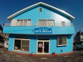 静岡県伊東市城ヶ崎海岸、伊豆高原駅から徒歩10分ほどにある小さなダイブショップです。メインのスタッフ3名は20年以上、伊豆の海を潜り続け、伊豆海洋公園の海を知り尽くしているベテランダイバー。なじみのスタッフがいつも居る安心なお店がダイブドリームの魅力の一つと考えています。初心者向けのコースではダイビングの基礎からしっかり丁寧に指導、ファンダイビングコースでは四季のある伊豆の海を余すこと無く紹介していきます。関東から日帰りで楽しめる伊豆の海の素晴らしさを再発見して下さい。